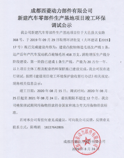 西菱動力環(huán)保調(diào)試公示