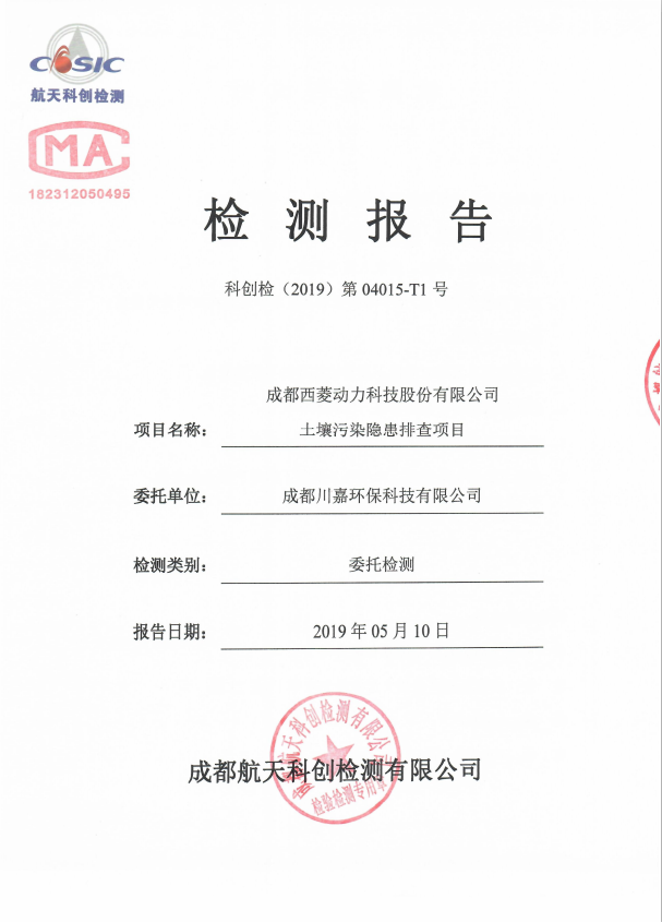 2019年成都西菱動(dòng)力科技股份有限公司土壤監(jiān)測報(bào)告